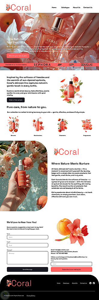 تصميم صفحة هبوط لعلامة عناية بالبشرة Coral