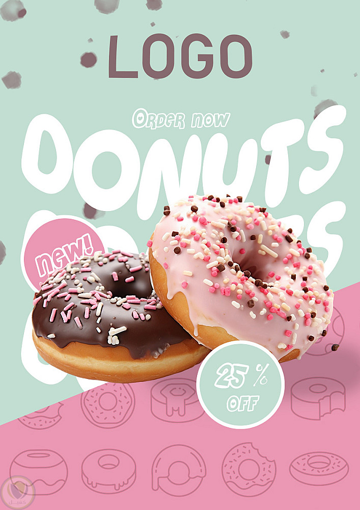 تصميم بوستر اعلاني لمحل دوناتس بأسلوب جذاب، ركزت على الألوان الوردي لتعبر عن روح المنتج.