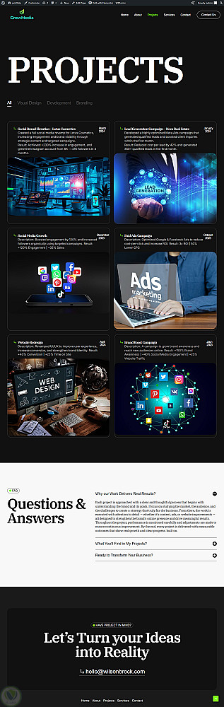 قمت بتصميم وتطوير بورتفوليو كامل على منصة WordPress لمتخصصة في مجال الديجيتال ماركتينج بهدف عرض خدماتها ومشاريعها السابقة بشكل احترافي وجذاب.