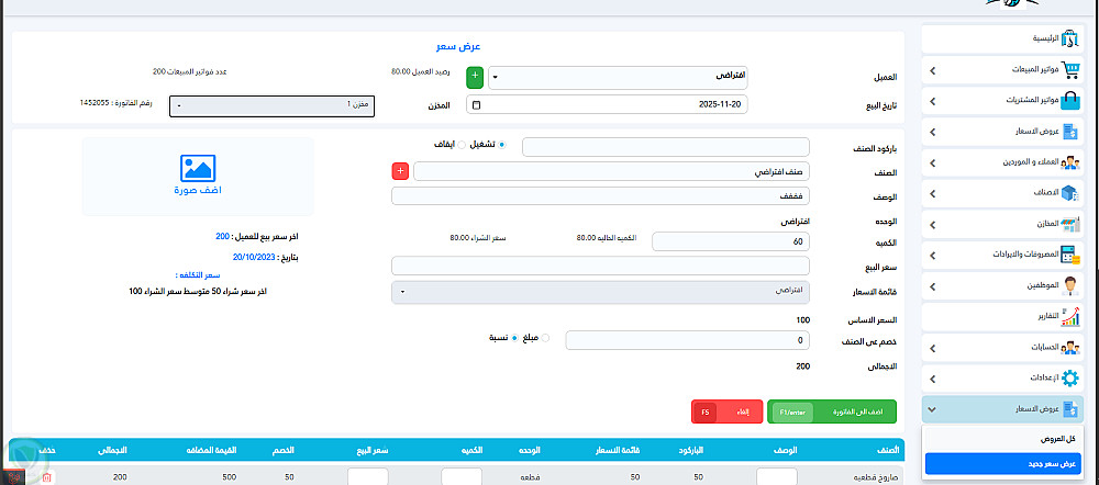 نفطه بيع تتيح ليع اصادار فواتير و تسجيل المبيعات و الحركات علي الخزن و المخازن و حساب مكاسب المنتج في القطعه الواحده