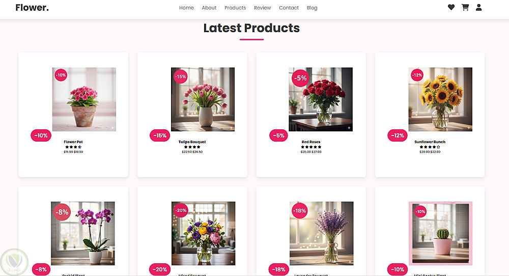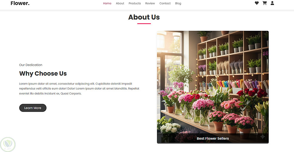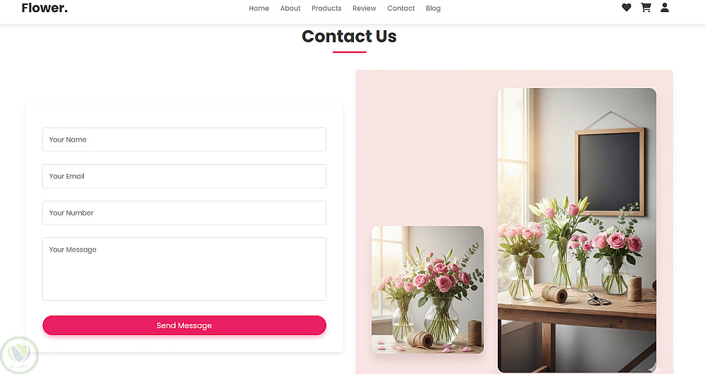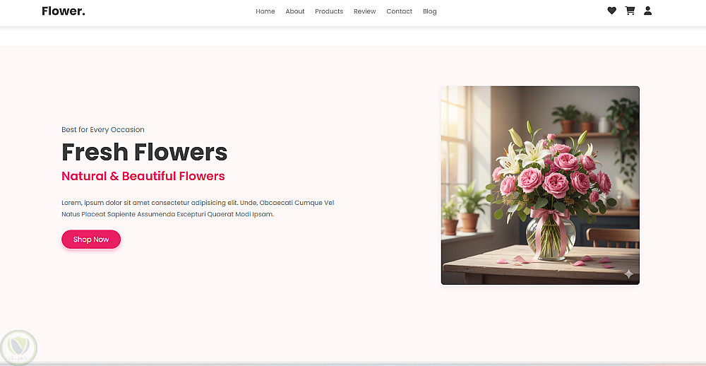. قسم الترحيب (Hero Section): عرض باقة زهور جذابة مع رسالة تسويقية واضحة.