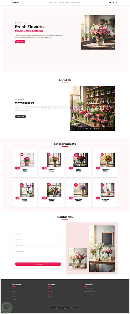 . تم تطوير هذه الصفحة لمتجر إلكتروني متخصص في بيع باقات الزهور والنباتات والهدايا. الهدف الأساسي هو تحويل الزائر إلى مشترٍ عبر عرض المنتجات بصورة جذابة وتوفير تجربة شراء سهلة وسريعة.