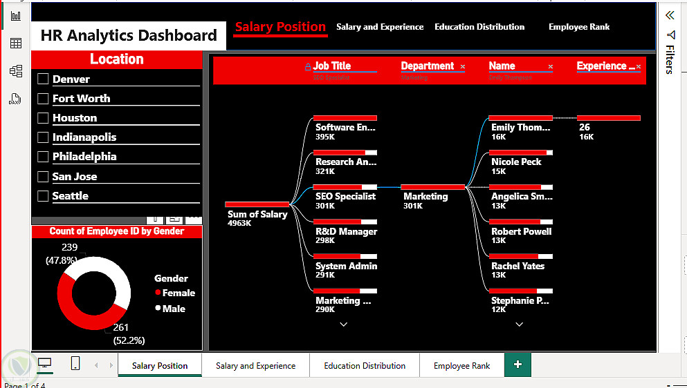 تقرير تحليلي لبيانات الموارد البشرية باستخدام Power BI يهدف لتوضيح حالة الموظفين داخل الشركة من خلال مؤشرات واضحة مثل:
