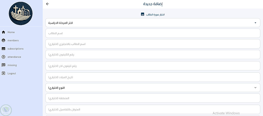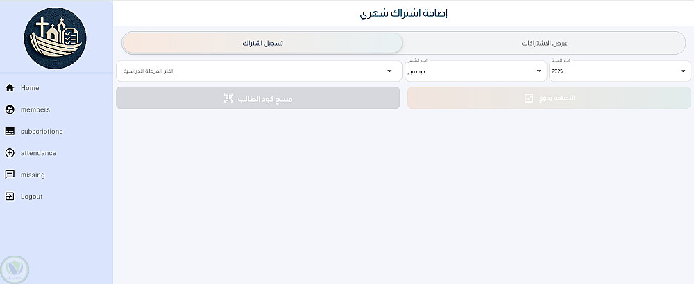 تطبيق ويب لإدارة أنشطة الكنيسة. يتيح تسجيل الأعضاء، الأنشطة، الفعاليات. كما يوفر لوحة تحكم للإدارة لمتابعة جميع العمليات بسهولة، مع إمكانية التواصل مع الأعضاء وإرسال الإشعارات والتقارير الشهرية.