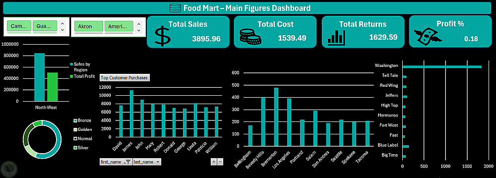 في مشروع Food Mart اشتغلت على تحليل بيانات مبيعات سلسلة متاجر أغذية، بهدف فهم أداء الفروع والمنتجات والعملاء على مدار فترات زمنية مختلفة. بدأت بتنظيف البيانات وترتيب الأعمدة والتأكد من إنها جاهزة للمعالجة، لأن البيانات كان فيها بعض التكرارات والقيم الناقصة اللي لازم تتظبط قبل أي تحليل.