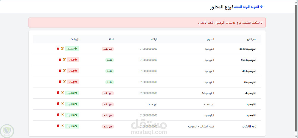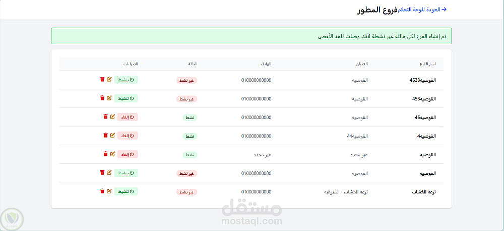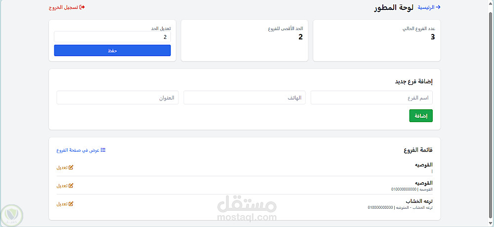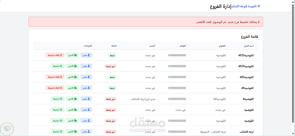 Admin: تحكم كامل في النظام والفروع والمستخدمين