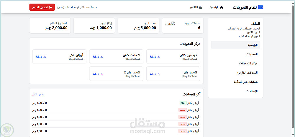 Cashier: تنفيذ عمليات السحب والإيداع والتحويل