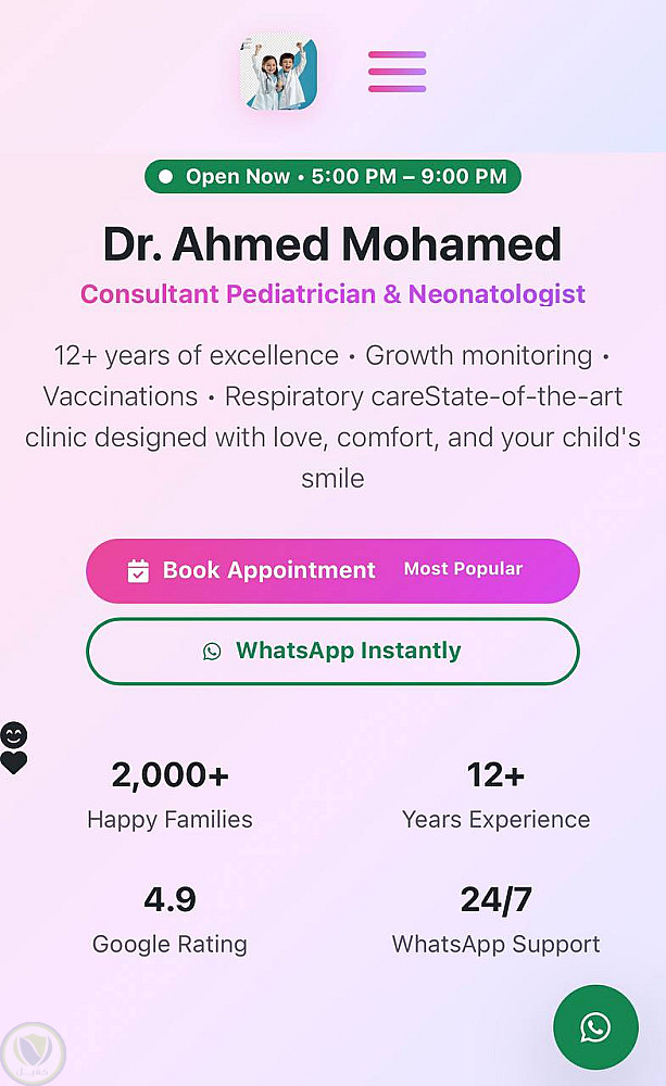 تصميم وتطوير موقع إلكتروني احترافي لعيادة طبيب أطفال