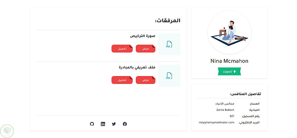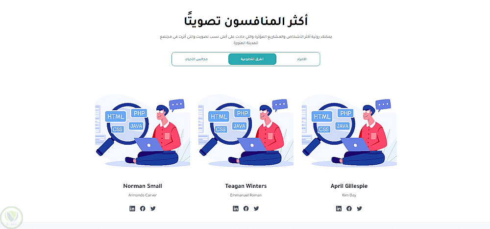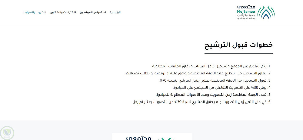 تم تطوير موقع إلكتروني كمنافسة بين مجموعة من المرشحين باستخدام Laravel وتقنية OTP عبر الجوال. يتيح النظام للمرشحين التسجيل وفق فئات محددة والتحقق من البيانات قبل اعتمادها للمشاركة في التصويت.
