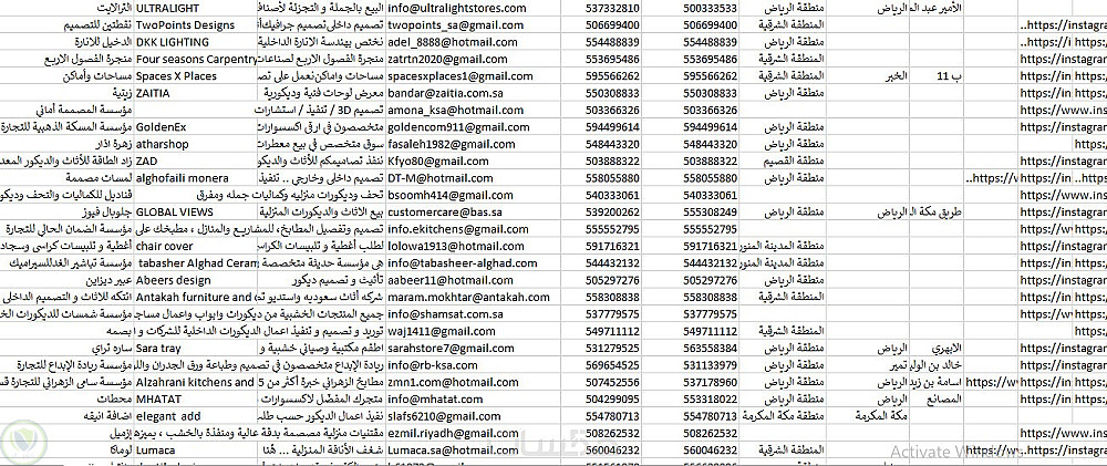 قمت في هذا المشروع بجمع وتنظيم بيانات تفصيلية لأكثر من 100 منشأة تجارية متخصصة في الإضاءة، التصميم الداخلي، والأثاث الخشبي.