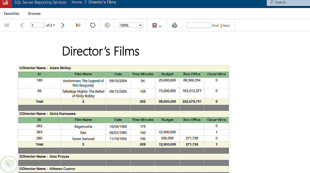 تحليل بيانات الأفلام الفائزة بالأوسكار باستخدام SQL Server Reporting Services (SSRS)