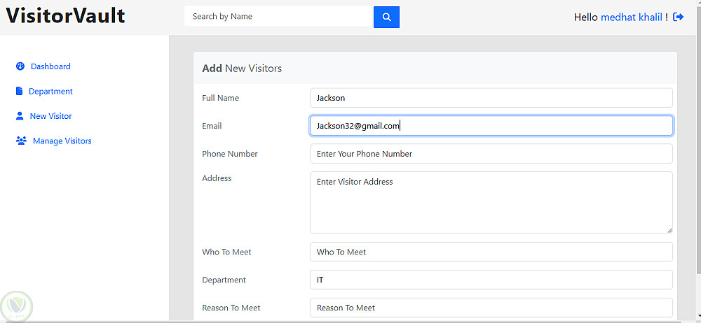 المشروع عبارة عن نظام يمكن المستخدمين من تسجيل الدخول و اضافة اقسام لكل زائر للشركة , كل زائر يتم الاحتفاظ ببياناته و توجد خاصية البحث لايجاد الزوار و معرفة جميع بياناتهم . في هذا المشروع استخدمت عدة تقنيات للواجهة الامامية مثل HTML , CSS , Bootsrap , و تقنيات الواجهة الخلفية هي PHP , MySQL
