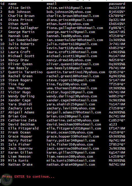 يدعم النظام التحقق من أنواع البيانات (Data Type Validation) وفرض المفتاح الأساسي (Primary Key Enforcement)، مما يعكس مستوى متقدمًا في البرمجة باستخدام Bash والتعامل مع النظام وإدارة البيانات على مستوى النظام (System-Level Data Manipulation).