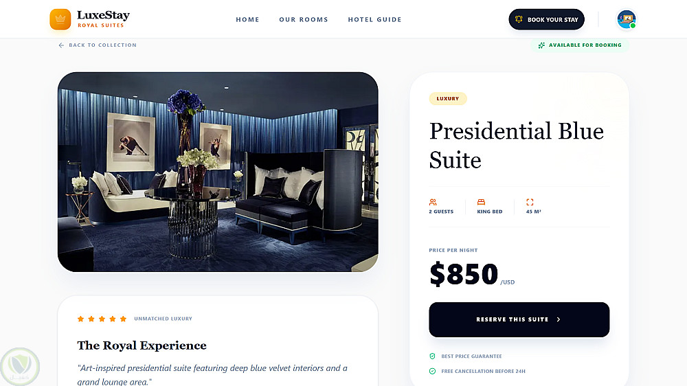 واجهة مستخدم (UX): تصميم أنيق وبسيط يشجع الزوار على إتمام الحجز.