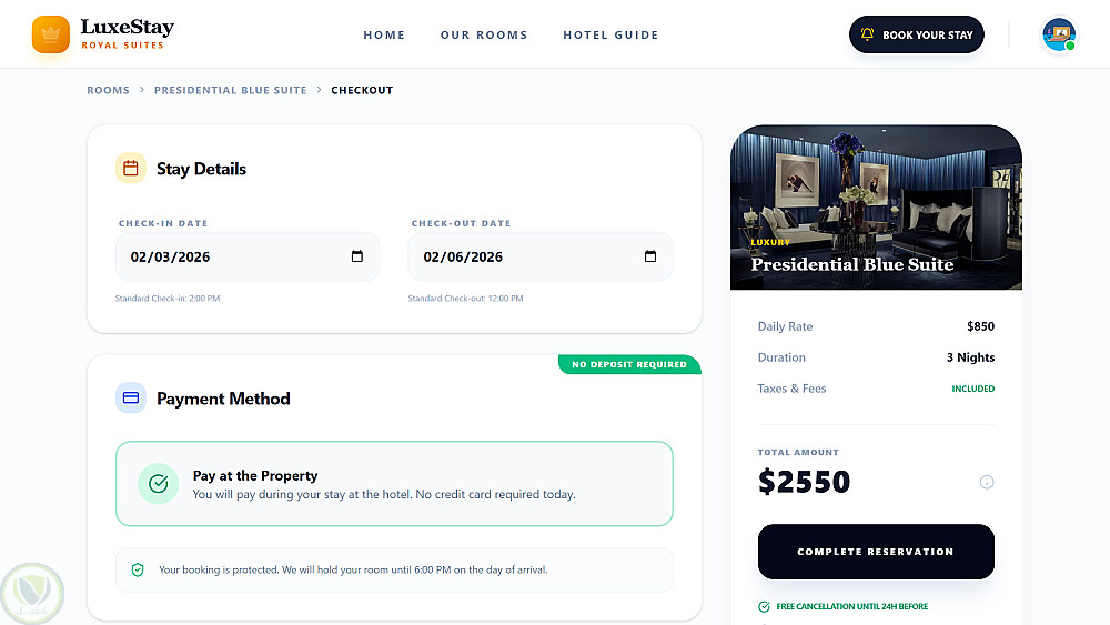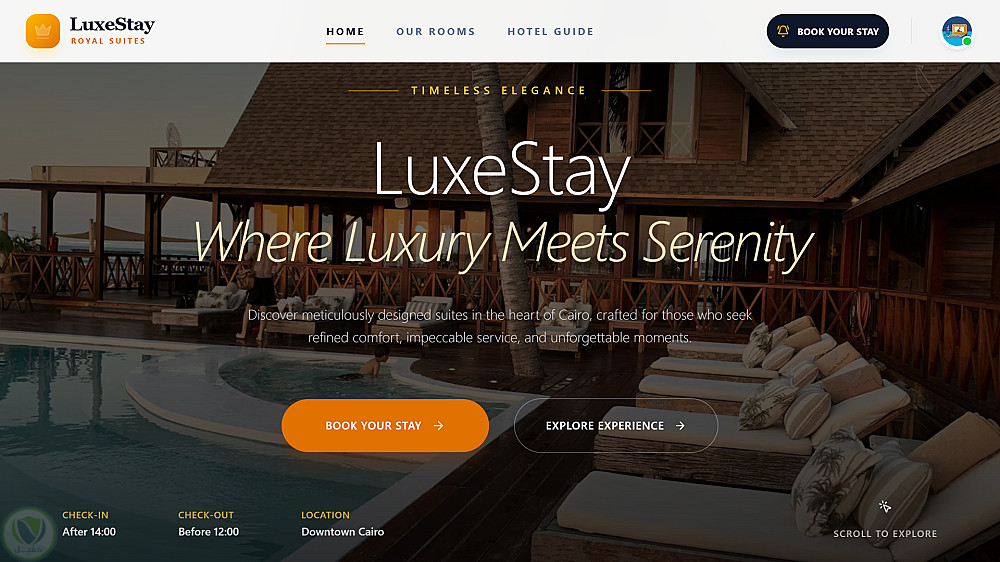 LuxeStay: تطوير نظام حجز فندقي متكامل بتجربة مستخدم فاخرة