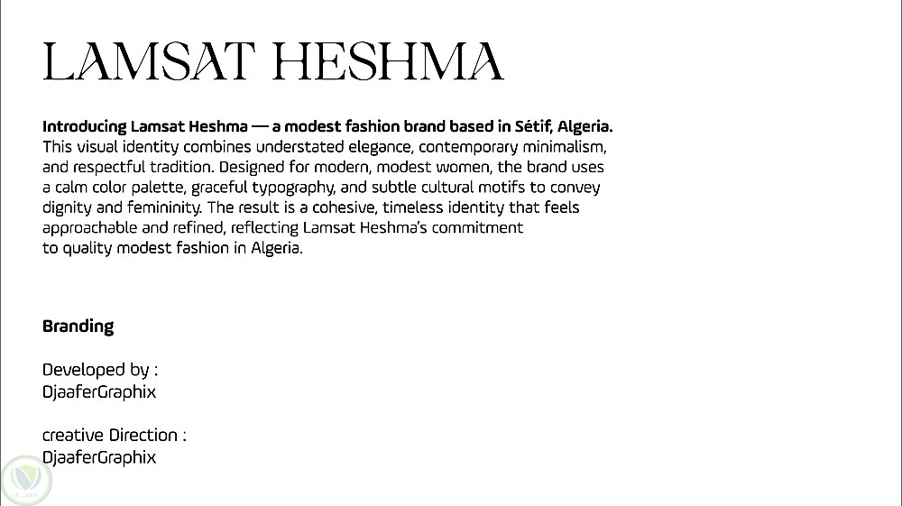 تساعد هذه الهوية العلامة التجارية على التميز في سوق الأزياء المحتشمة، مع الحفاظ على طابع يبعث على الدفء، والثقة، والأنوثة.