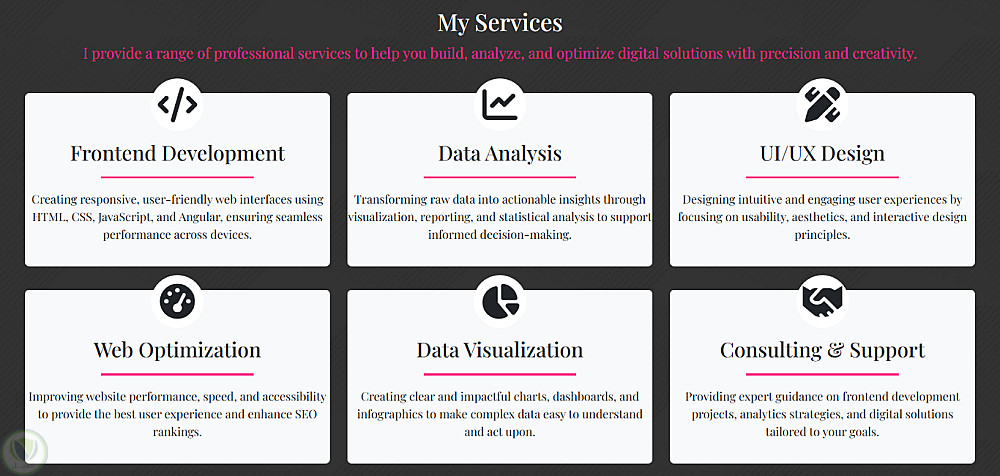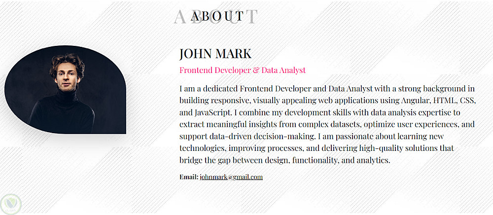 قمت بتصميم وتطوير هذا القالب ليكون واجهة Portfolio أنيقة واحترافية، مخصصة للمبدعين والمبرمجين ومحللي البيانات الذين يرغبون في بناء حضور قوي على الإنترنت.