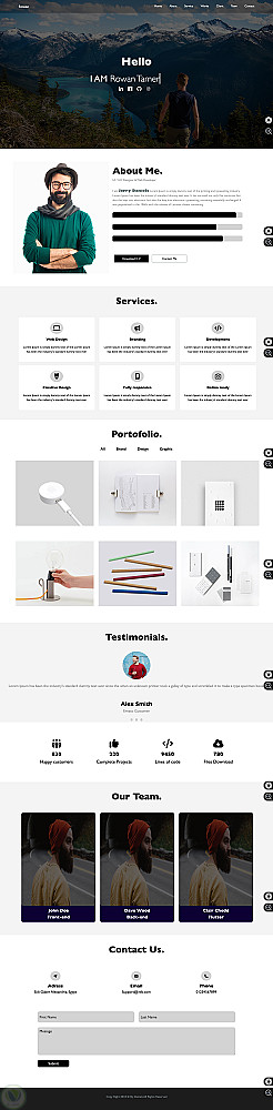 يتميز الموقع بقائمة تنقل واضحة تتضمن أقسامًا مثل الرئيسية، نبذة عني، الخدمات، الأعمال، آراء العملاء، الفريق، والتواصل، مما يساعد الزوار على التعرف على مسيرته المهنية بسهولة. يمكن للزوار الاطلاع على خبراته في تصميم المواقع، وبناء الهوية البصرية، والتطوير، والتصميم الإبداعي، بالإضافة إلى استكشاف تصنيفات المشاريع، وقراءة تقييمات العملاء، والتعرف على أعضاء الفريق، والتواصل معه بسهولة من خلال نموذج الاتصال.