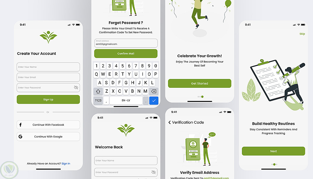 تصميم واجهات تطبيق "Growin" لبناء وتتبع العادات اليومية
