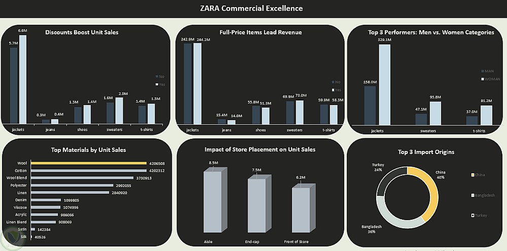 تعتبر الجاكيتات النسائية "الدجاجة التي تبيض ذهباً" للشركة. نجاح زارا يرتكز على التوازن بين جاذبية الخصم والحفاظ على قيمة السعر الكامل، مع كفاءة عالية في توزيع المنتجات داخل المتجر واختيار خامات أساسية تلبي ذوق المستهلك.