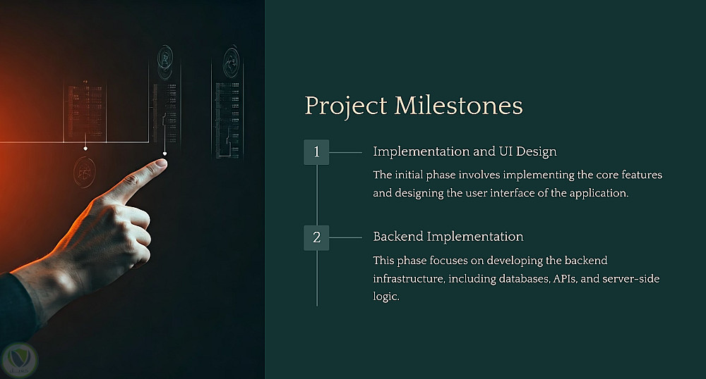 يتضمن توضيح فكرة التطبيق، آلية العمل، تجربة المستخدم، ومكونات النظام بأسلوب مبسّط ومنظم، مع تصميم شرائح حديثة وواضحة.