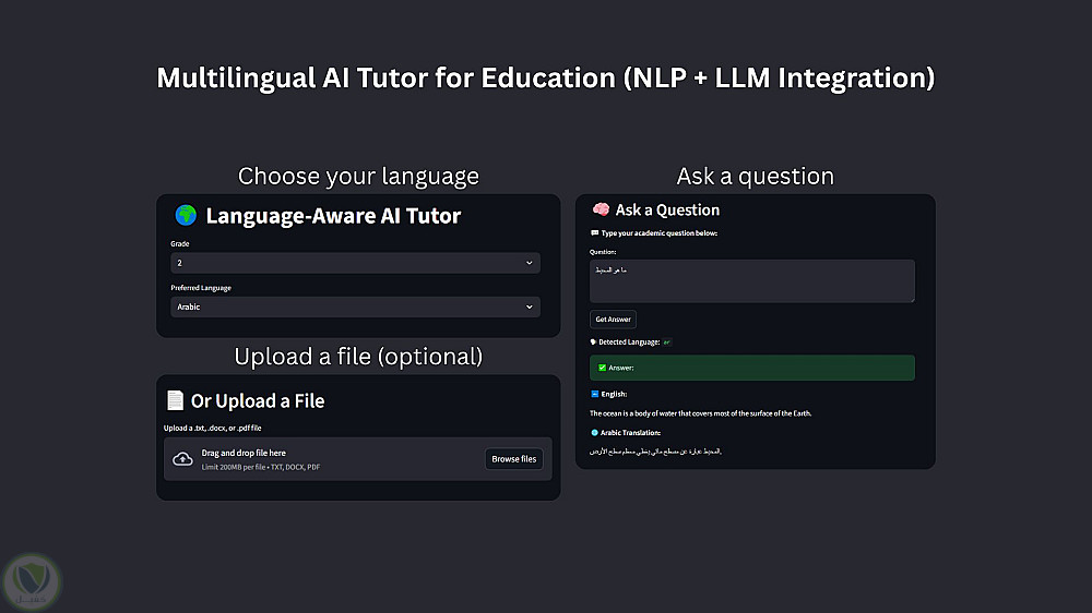المشروع يعكس القدرة على العمل مع Large Language Models (LLMs)، تخصيصها (Fine-Tuning / Prompt Engineering)، وبناء حلول تعليمية ذكية قابلة للتوسّع والتطبيق العملي.