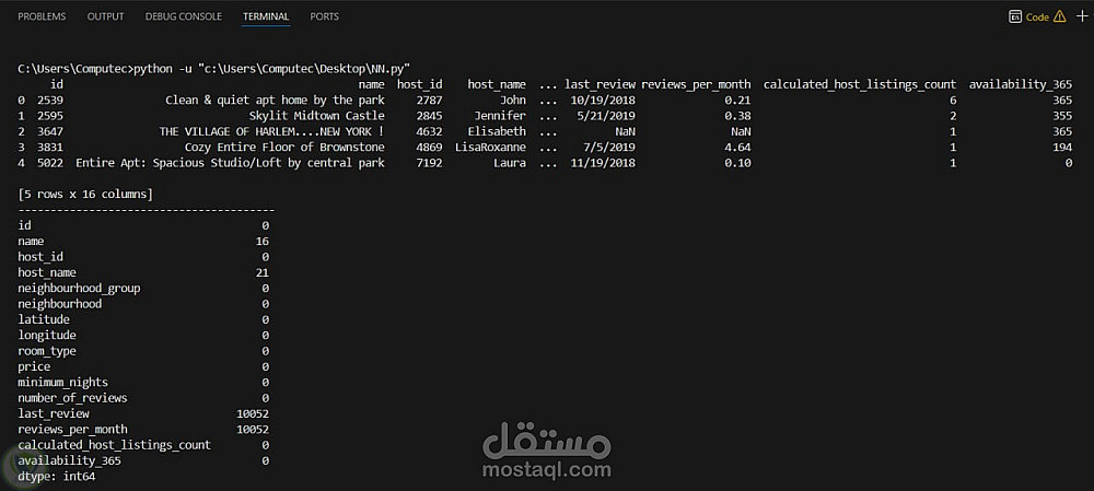 -تحميل ومعالجة Dataset حقيقية خاصة بـ Airbnb