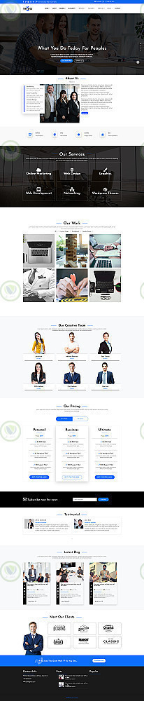 تم تقسيم العمل لعدة قطاعات : header , Carasoul , service ,About , Work , Team ,Pricing , Testmonial , Subscribe , Blog