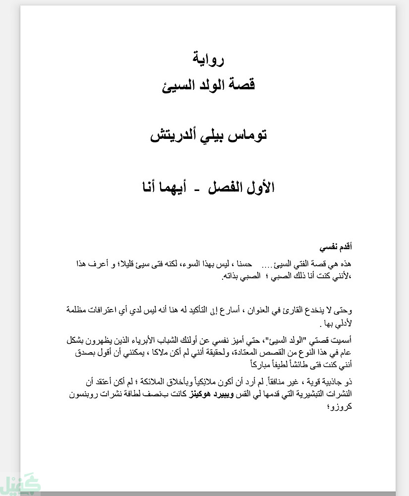 ترجمه و إعادة صياغة ادابية لرواية من الأدب الإنجليزي