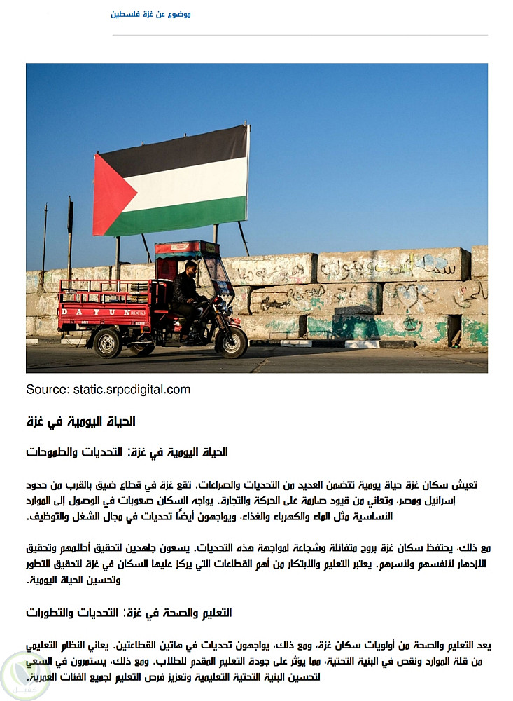 مقال عن غزة فلسطين