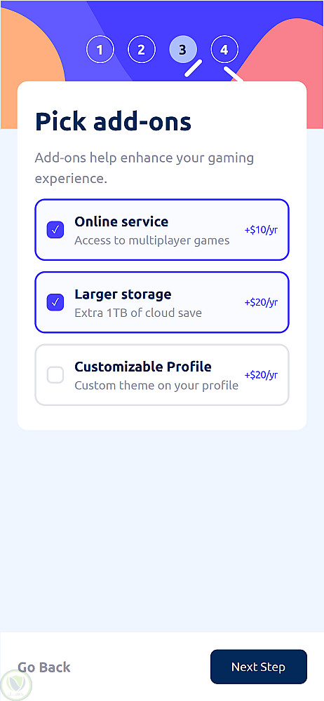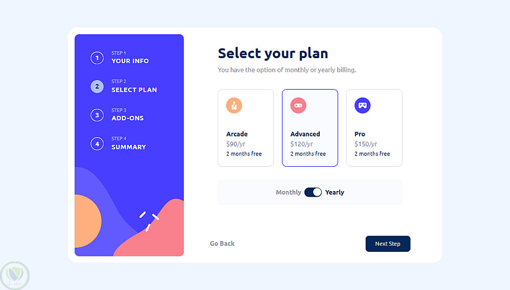 تطوير تحدي من موقع (Frontend Mentor) لإنشاء نموذج ادخال بيانات متعدد الخطوات متجاوب مع جميع الشاشات باستخدام Tailwind-CSS و Vanilla JS من موقع (Frontend Mentor)