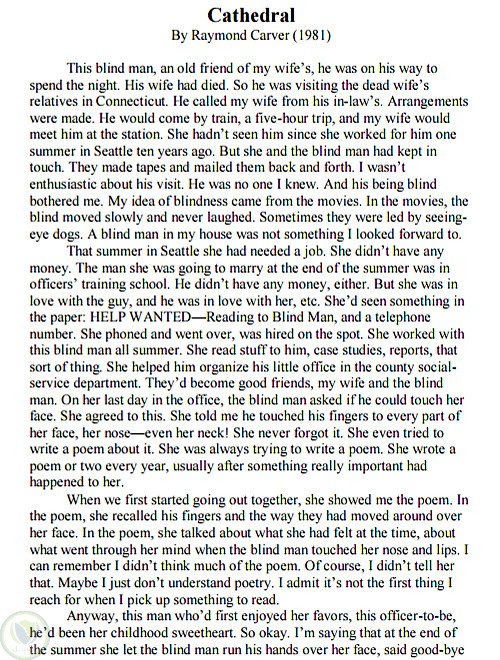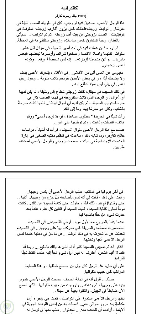 ترجمة أدبية لجزء من رواية (الكاتدرائية ) ل ( رايموند كارفر)