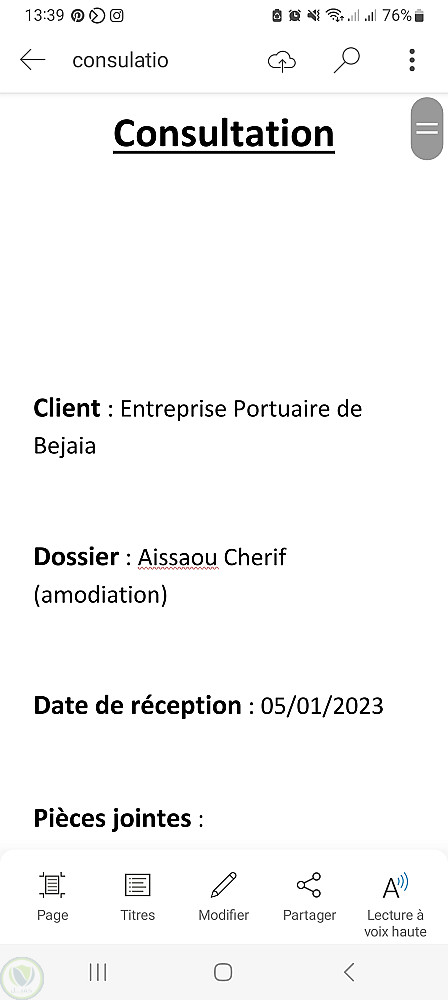من أعمالي أيضا ترجمة عدة إستشارات قضائية من العربي الى الفرنسي .