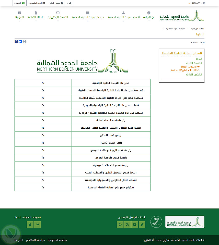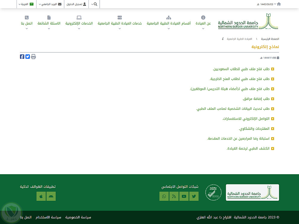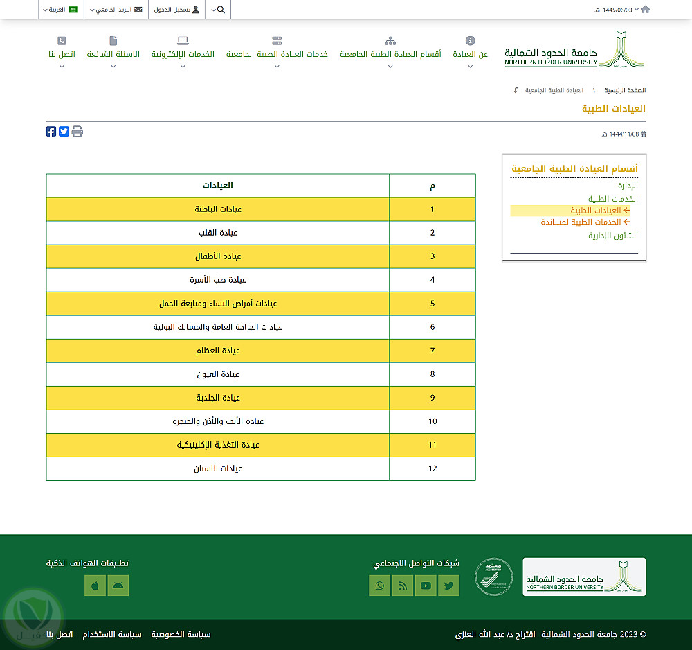 تنفيذ و برمجة نموذج لموقع العيادات الطبية الجامعية لجامعة الحدود الشمالية بالسعودية طبقا لطلبات العميل ان يكون :
