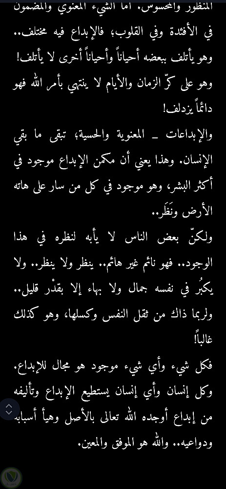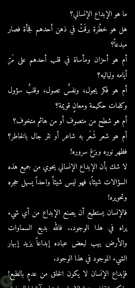 مقالة تتحدث عن الإبداع الإنساني بشكل أدبي.