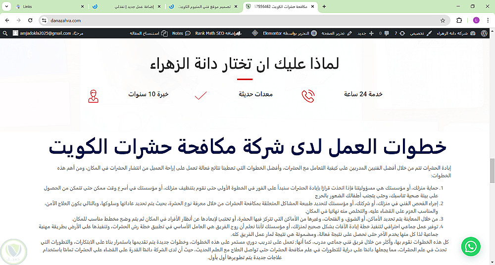 تصميم موقع ل شركة دانة الزهراء لمكافحة حشرات الكويت