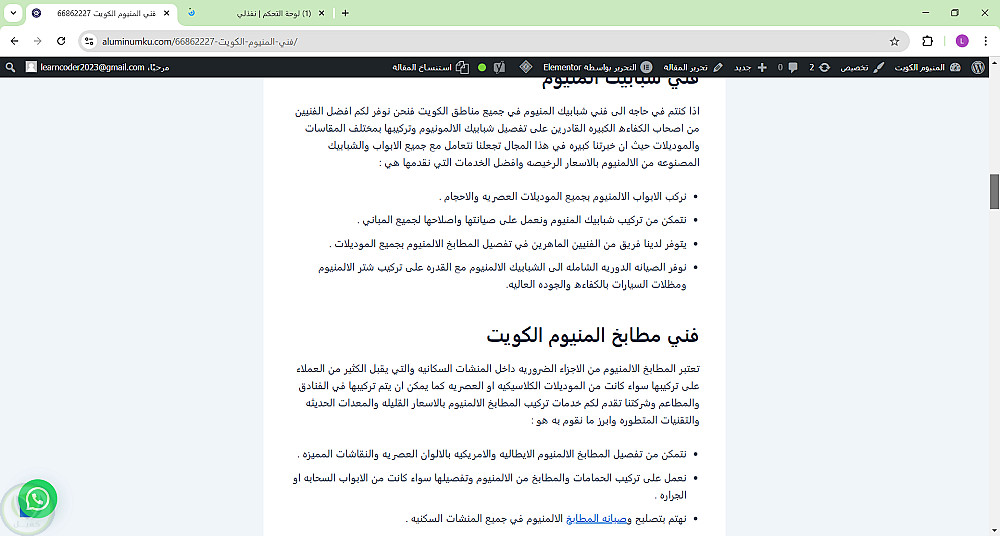 تصميم موقع الكتروني ل فني المنيوم الكويت