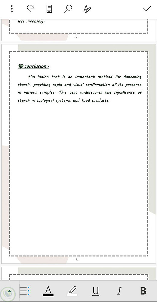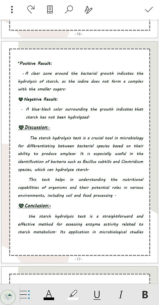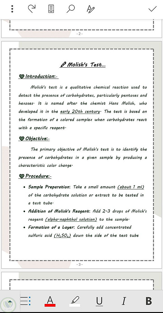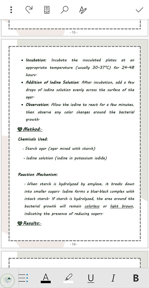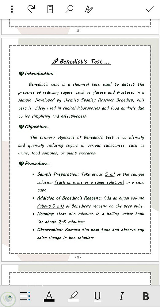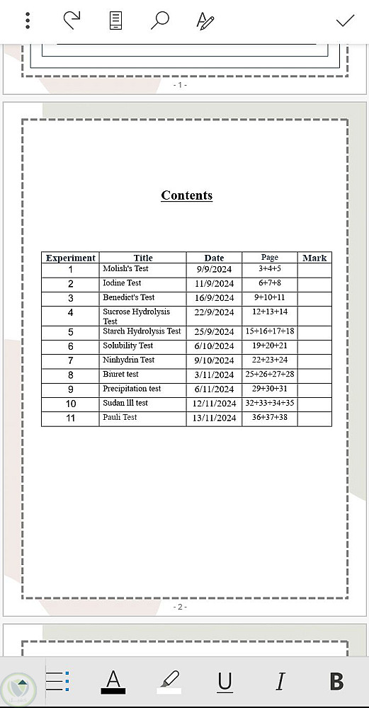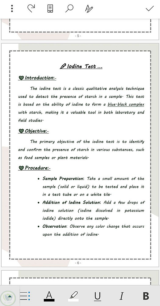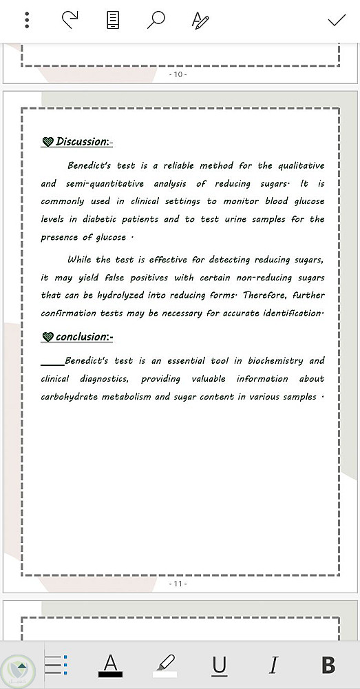 نفّذّت هذا العمل الذي هو عبارة كتابةالتقارير العملية الخاصة بي لمادة الكيمياء الحيوية والكتابة الأكاديمية هي السمة الغالبة على النص وقمت في البداية بالبحث عن كل أختبار أو تجربة في المراجع العلمية الألكترونية للتدوين يدوياً ثم قمت بالتجربة فعلياً وكتابة ماهو موجود أو ملاحظ من خلال التجربة