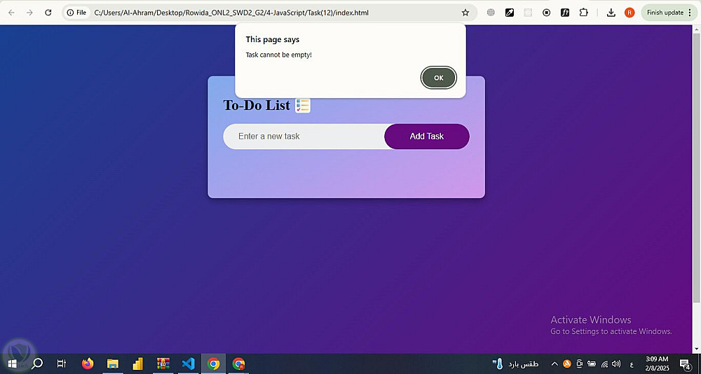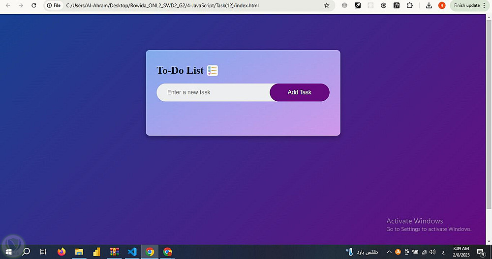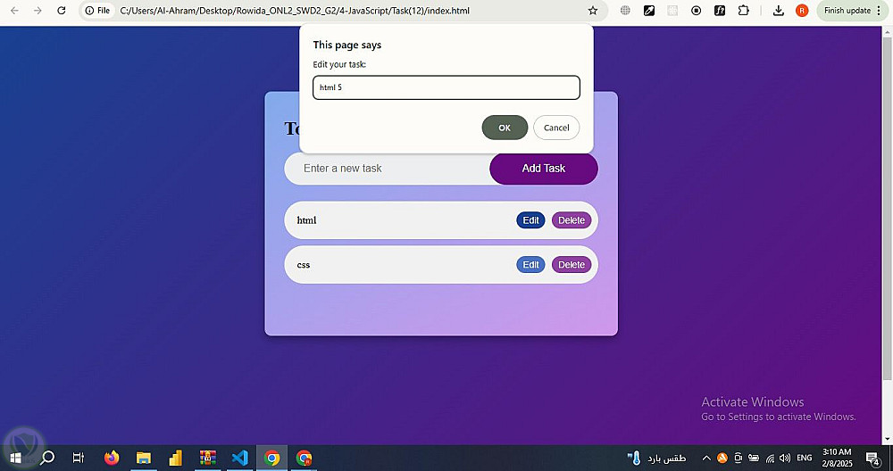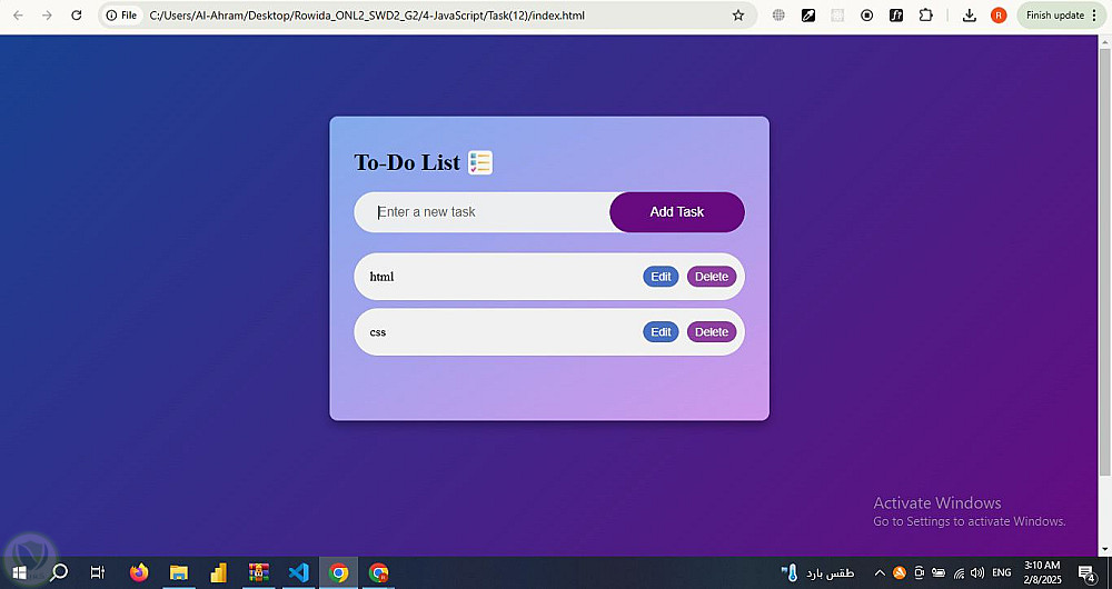 تطبيق قائمة المهام (To-Do List) مع إمكانية التعديل والحذف