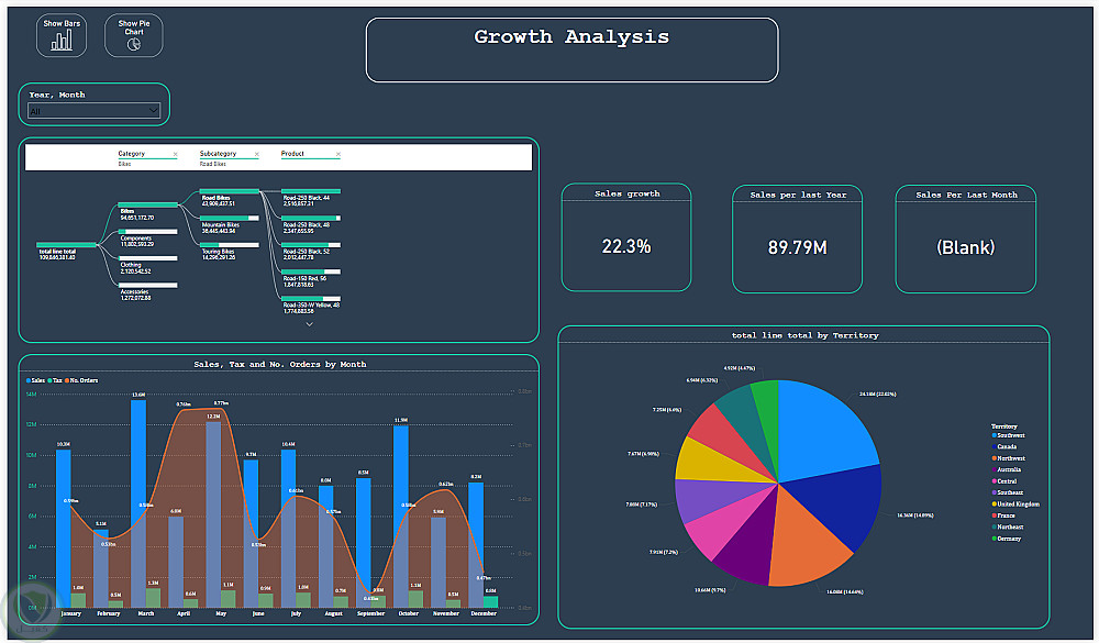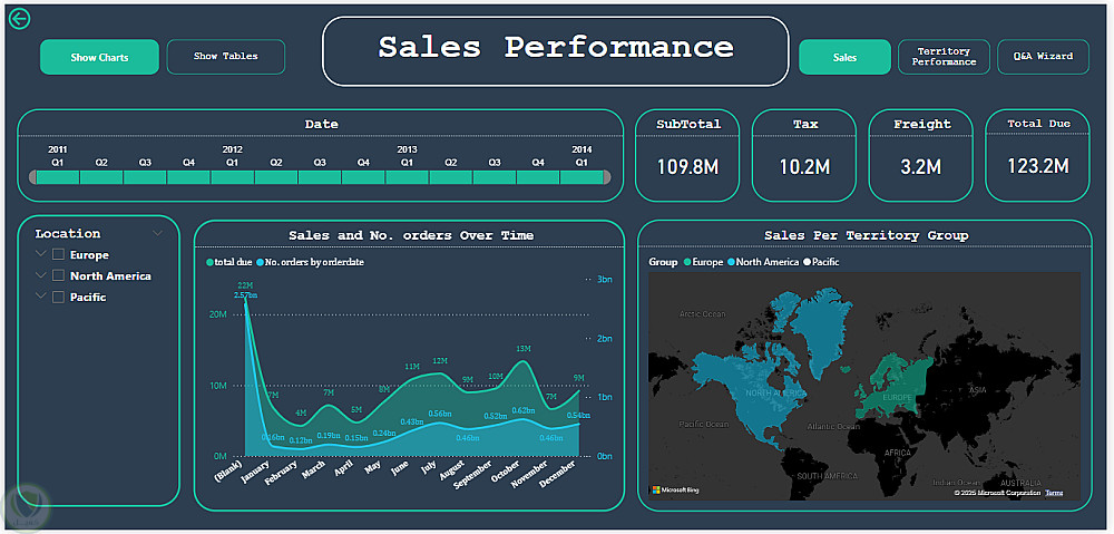 "تحليل بيانات المبيعات وتصميم لوحة تحكم تفاعلية باستخدام Power BI و SQL Server"