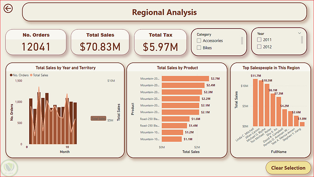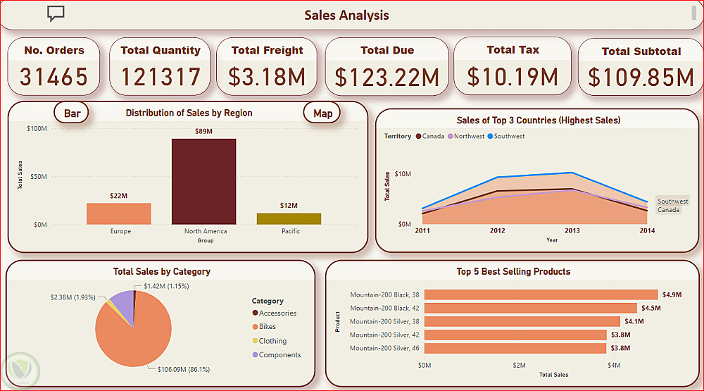 تحليل مبيعات Adventure Works باستخدام لوحة معلومات تفاعلية
