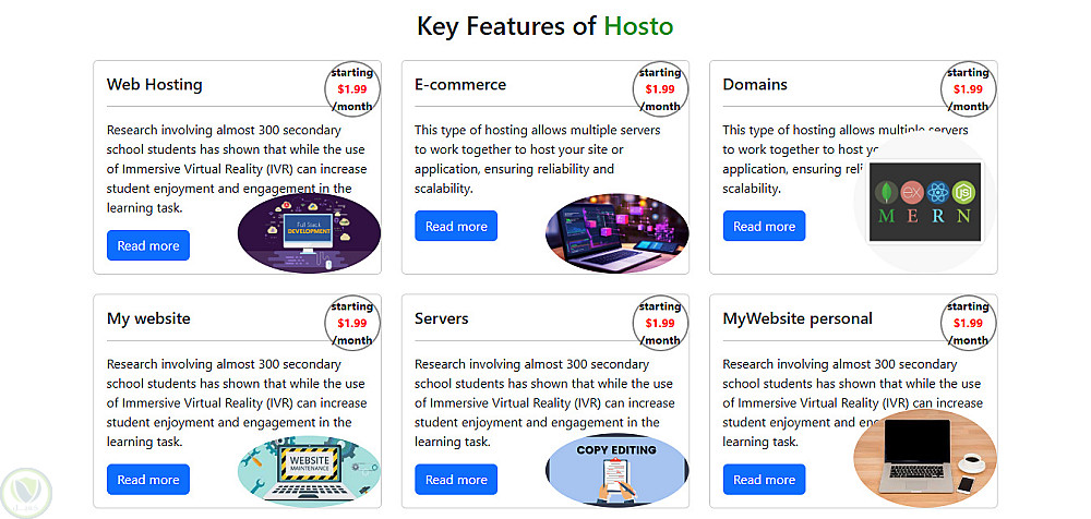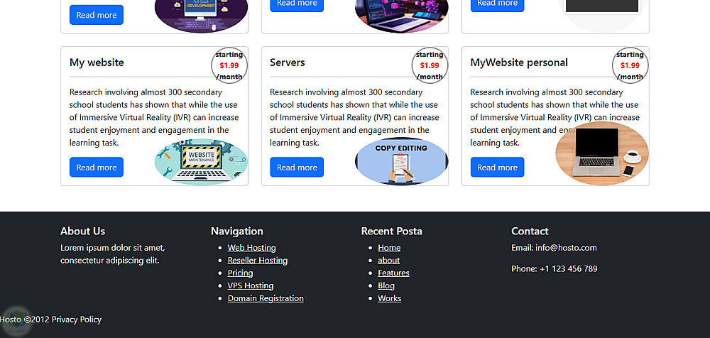 Hosto هو قالب Bootstrap حديث ومبتكر مصمم خصيصًا لاستضافة الويب وخدمات السيرفرات.