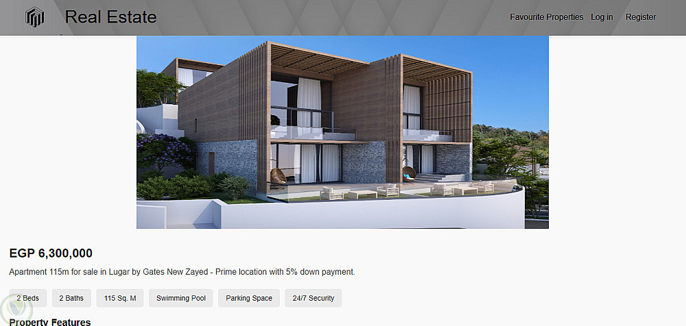 Real Estate هى منصة عقارية ذكية مبنية باستخدام جافا سكريبت.
