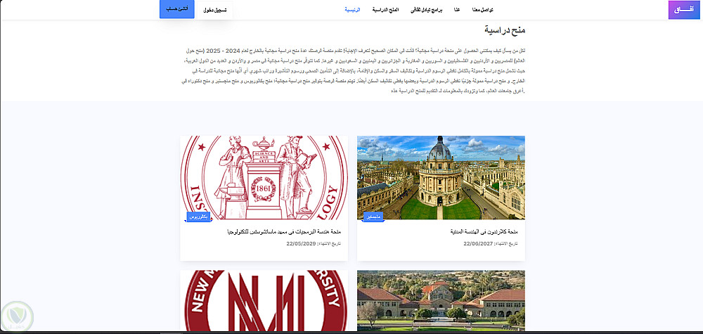 تصميم موقع كامل لعرض المنح الدراسيه للجامعات