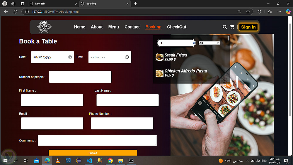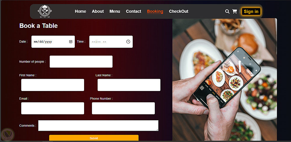 موقع إلكتروني لمطعم لتسهيل خدمة طلب الطعام وحجز الطاولات للمستخدمين.