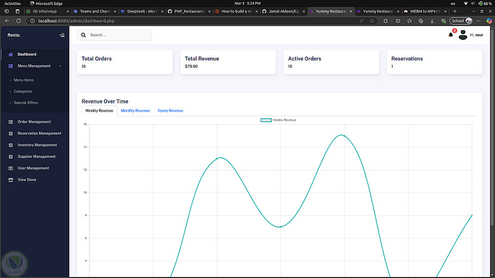 نظام إدارة المطاعم هو تطبيق ويب متكامل مصمم لتبسيط عمليات إدارة المطاعم وتعزيز تجربة العملاء. يتيح النظام للموظفين إدارة القوائم، تتبع الطلبات، حجز الطاولات، وإدارة المخزون بسهولة. بالنسبة للعملاء، يوفر النظام واجهة سهلة الاستخدام لتصفح القوائم، تقديم الطلبات، حجز الطاولات، وتتبع حالة الطلبات في الوقت الفعلي.