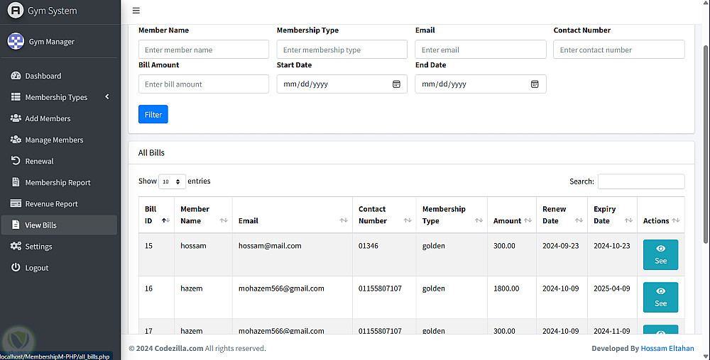 تم تطوير هذا النظام المتكامل لإدارة الصالات الرياضية باستخدام PHP وMySQL، ويشمل ميزات متنوعة مثل إدارة الأعضاء، تتبع المدفوعات، تسجيل العضويات، وتوليد الفواتير بشكل آلي. بالإضافة إلى ذلك، يوفر النظام تقارير إحصائية مفصلة عن العضويات المنتهية والإيرادات الشهرية. تم تصميم واجهة المستخدم باستخدام HTML، CSS، وBootstrap لتوفير تجربة استخدام سلسة وجذابة. كما تم استخدام قاعدة بيانات MySQL لتخزين البيانات بشكل منظم وآمن، مع ضمان الأداء العالي.