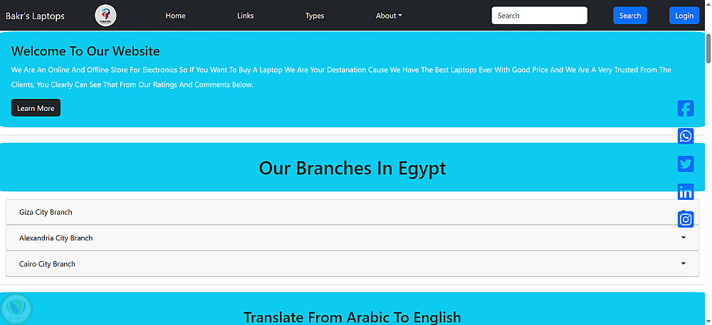 أقسام تفاعلية: مثل Accordion لعرض الفروع، و Cards لعرض المنتجات والأخبار.