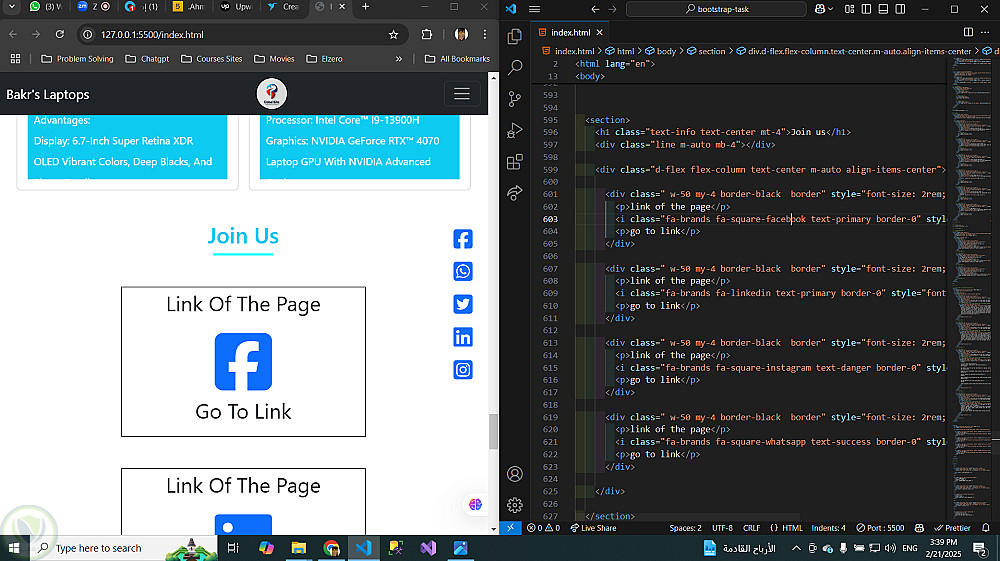 استخدام Bootstrap 5.3: لتسريع عملية التطوير وضمان التوافق مع معايير الويب الحديثة.