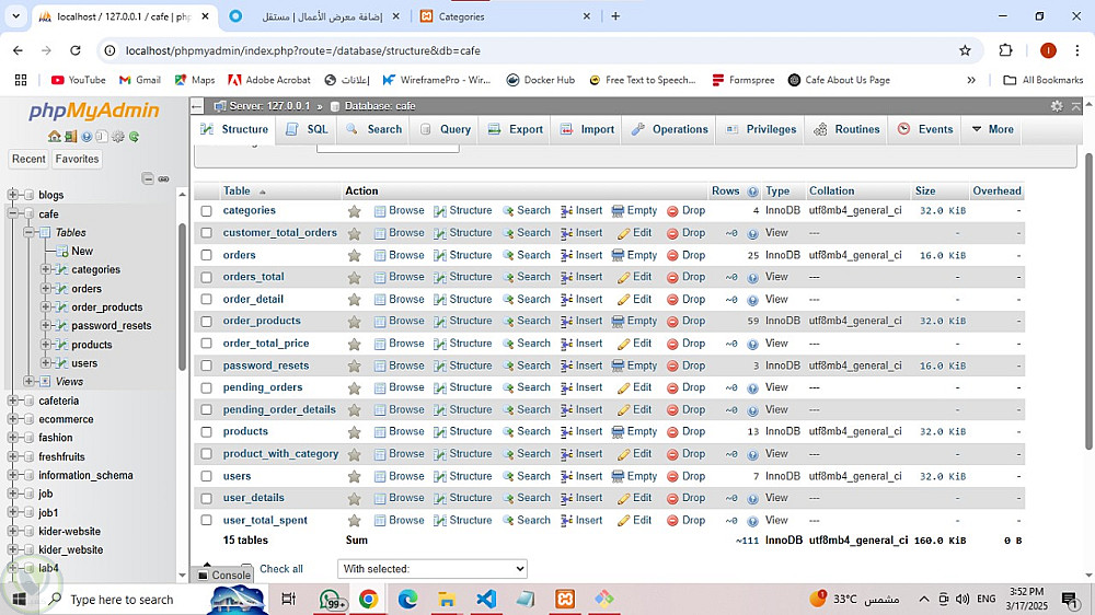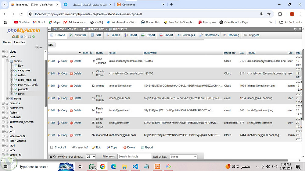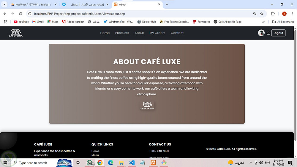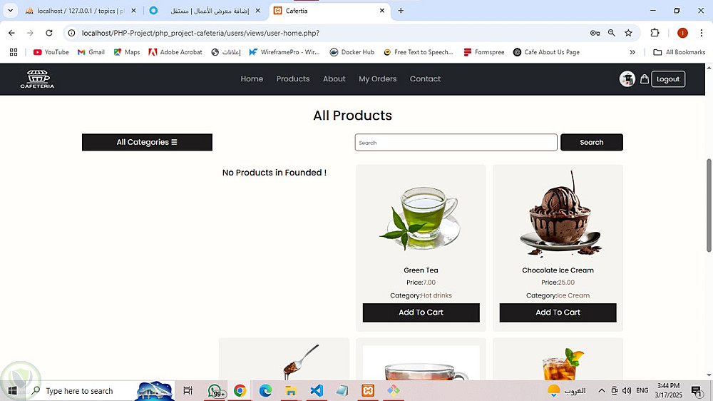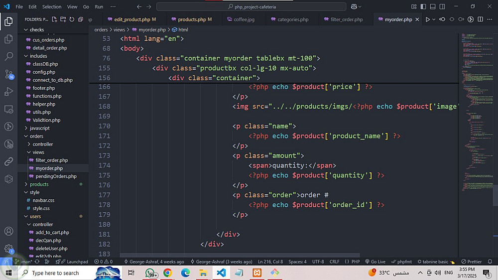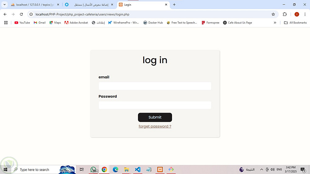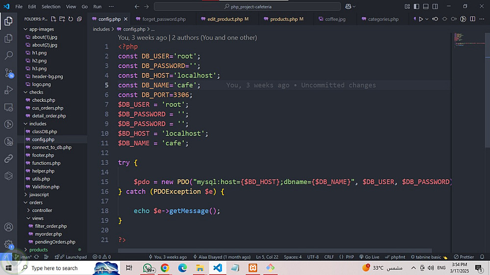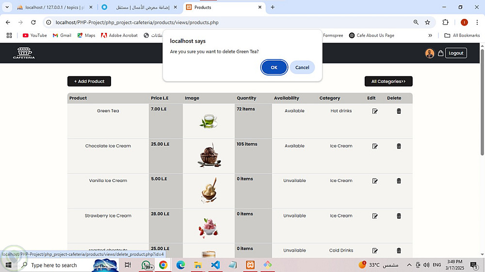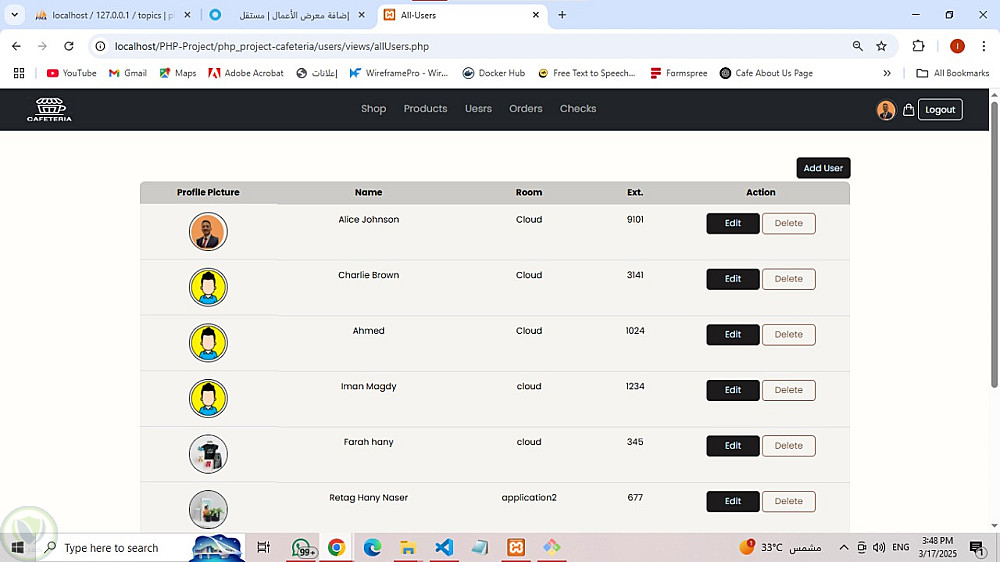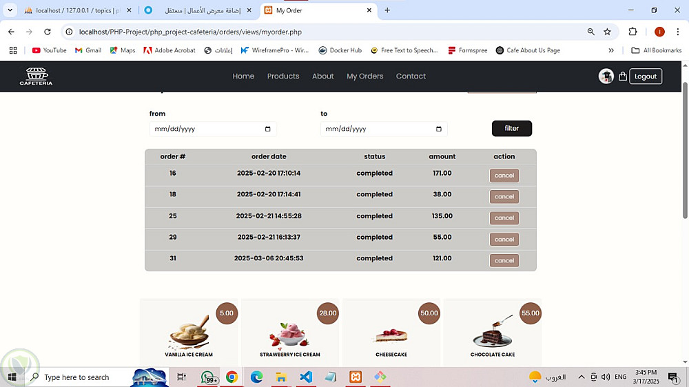 مشروع PHP: نظام إدارة كافيتيريا